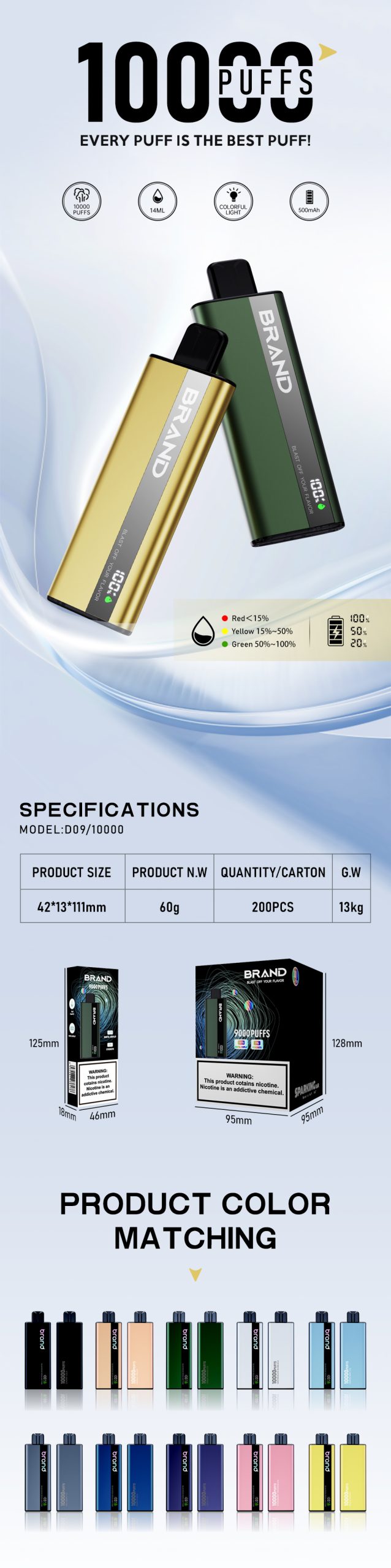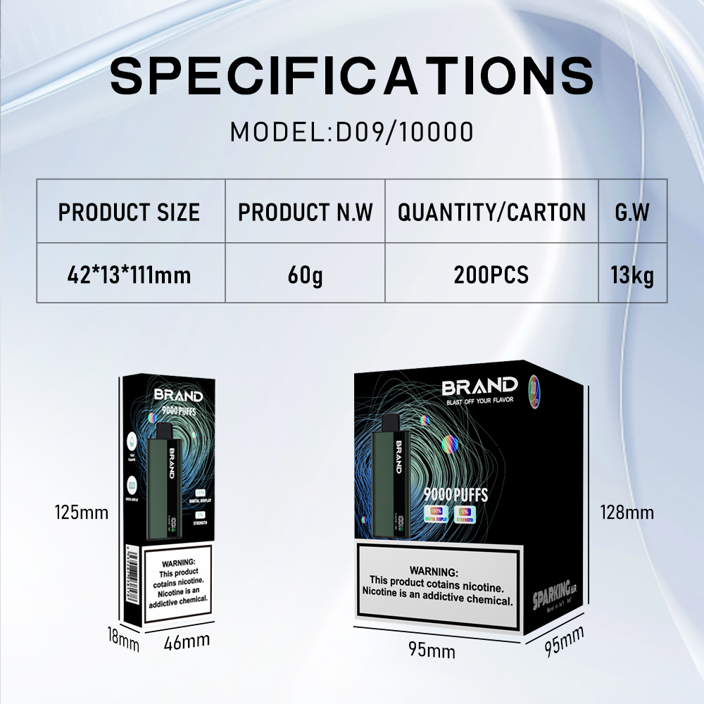Up to 10,000 puffs; 14 mL capacity