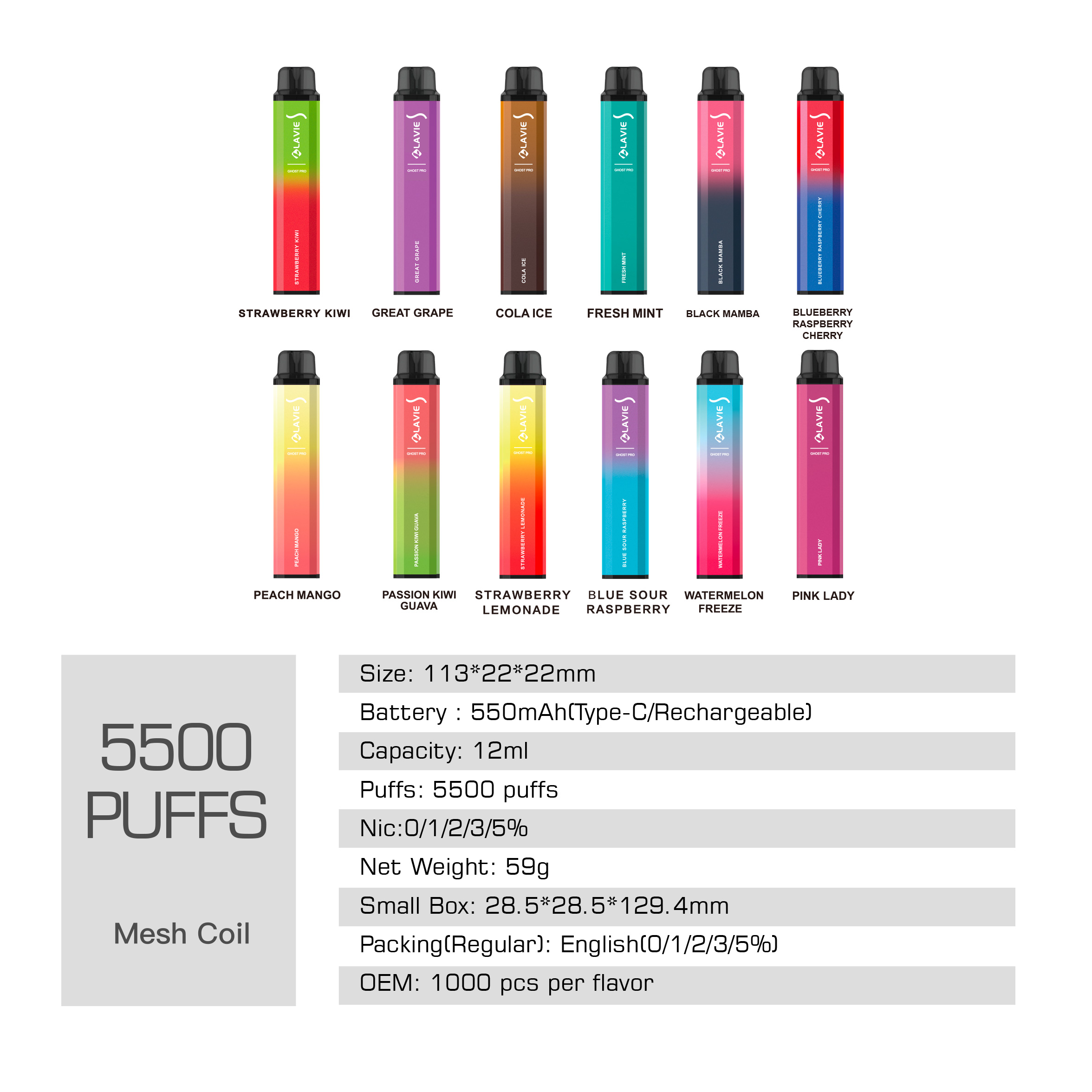 • 5,500 Puffs Per Device: Enjoy extended usage with each disposable.